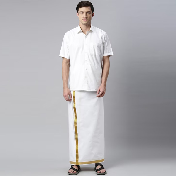 White solid dhoti, has a gold-coloured border